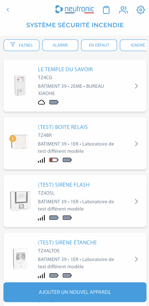 Statut en temps réel, test unitaire, localisation sur plan, visualiser l’ensemble de son installation